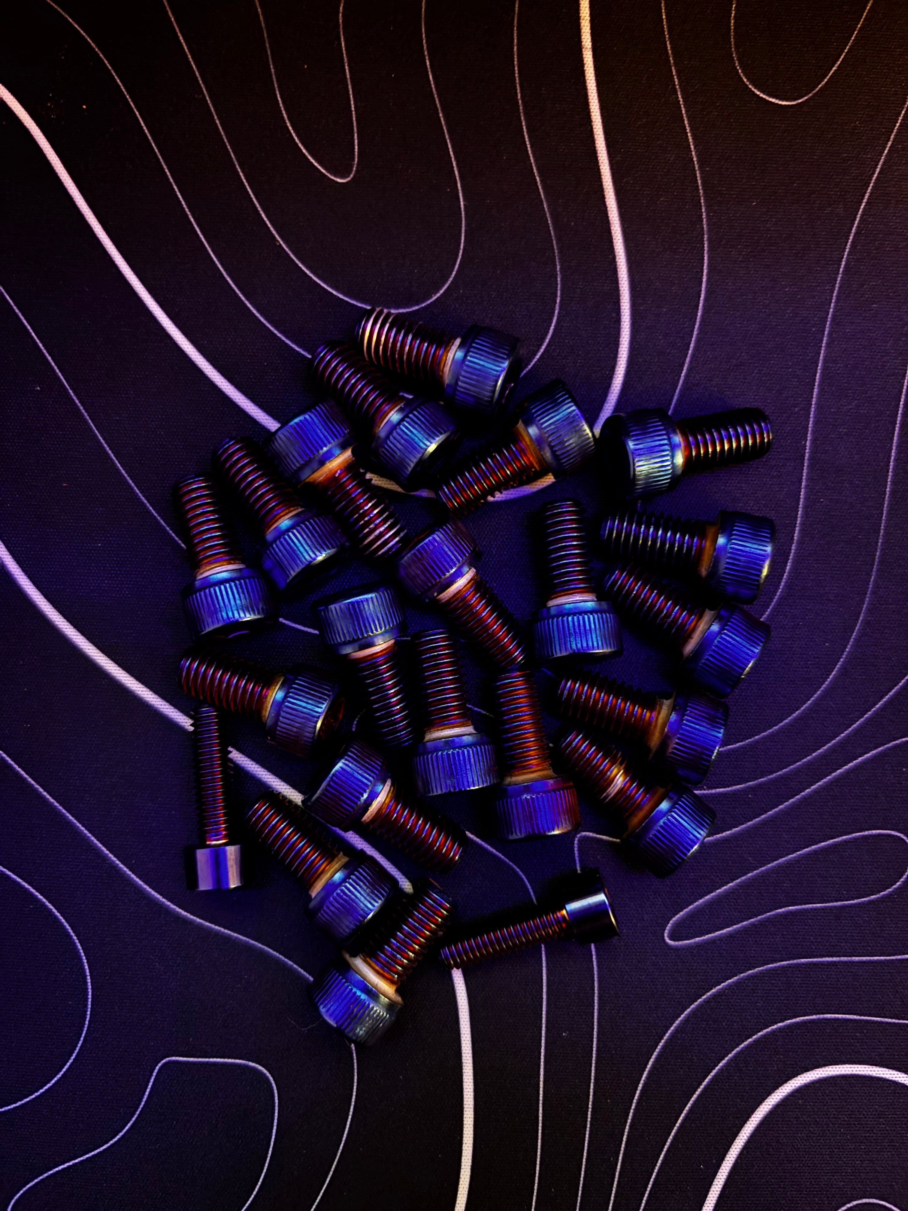Get rid of your old stock rusty bolts and make your bike stand out with burnt blue titanium bolts perfect for your bike.